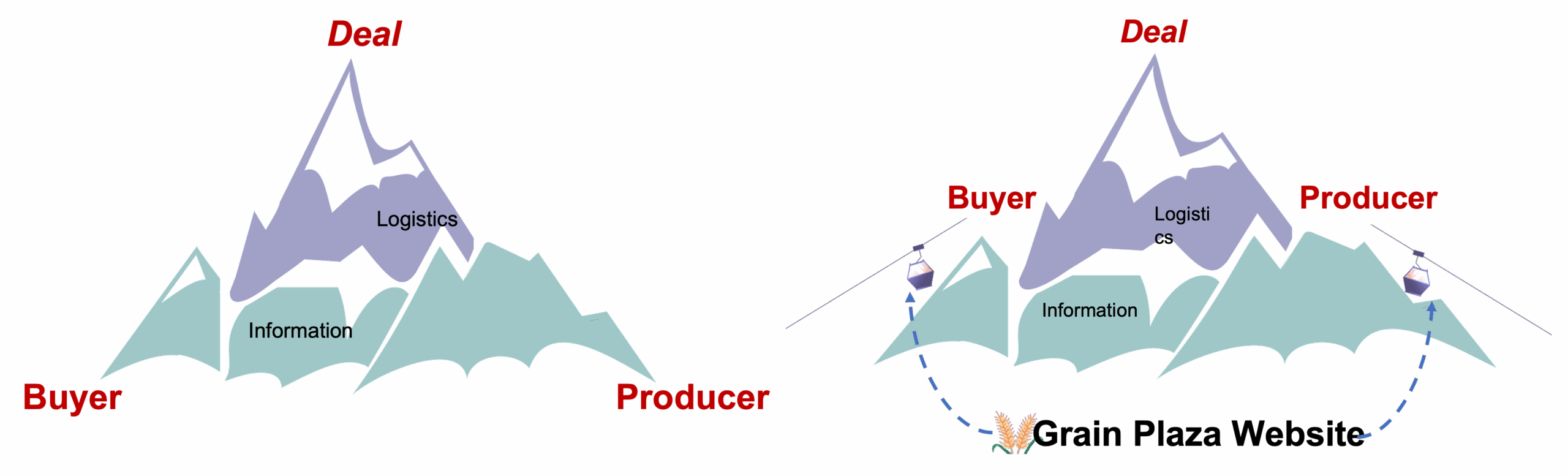 The initiative for selling prairie grains morphed into a focus on developing an AI-enhanced system to match remote and arms-length business interests. A system like this might consummate the deal, but it could plausibly help the parties to speed through the mating dance to decide if they want to finish up offline.