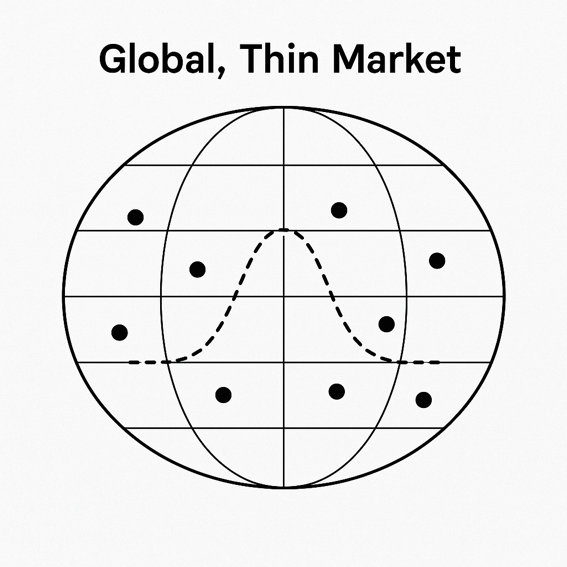 Thin Market Characteristics Assessment Information Asymmetry: HIGH Complex Matching Criteria: VERY HIGH Scattered Participants: MODERATE Economic Viability Analysis Transaction Value vs. Platform Costs: STRONG Friction Cost Reduction: VERY HIGH Risk Mitigation Value: EXTREMELY HIGH Revenue Model Potential Pricing Power: STRONG…